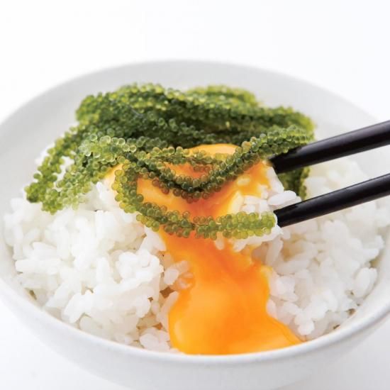 弊社施設海ぶどう農園 海ん道の飲食店で提供し、絶大な人気を誇る「海ぶどう卵かけご飯」!!